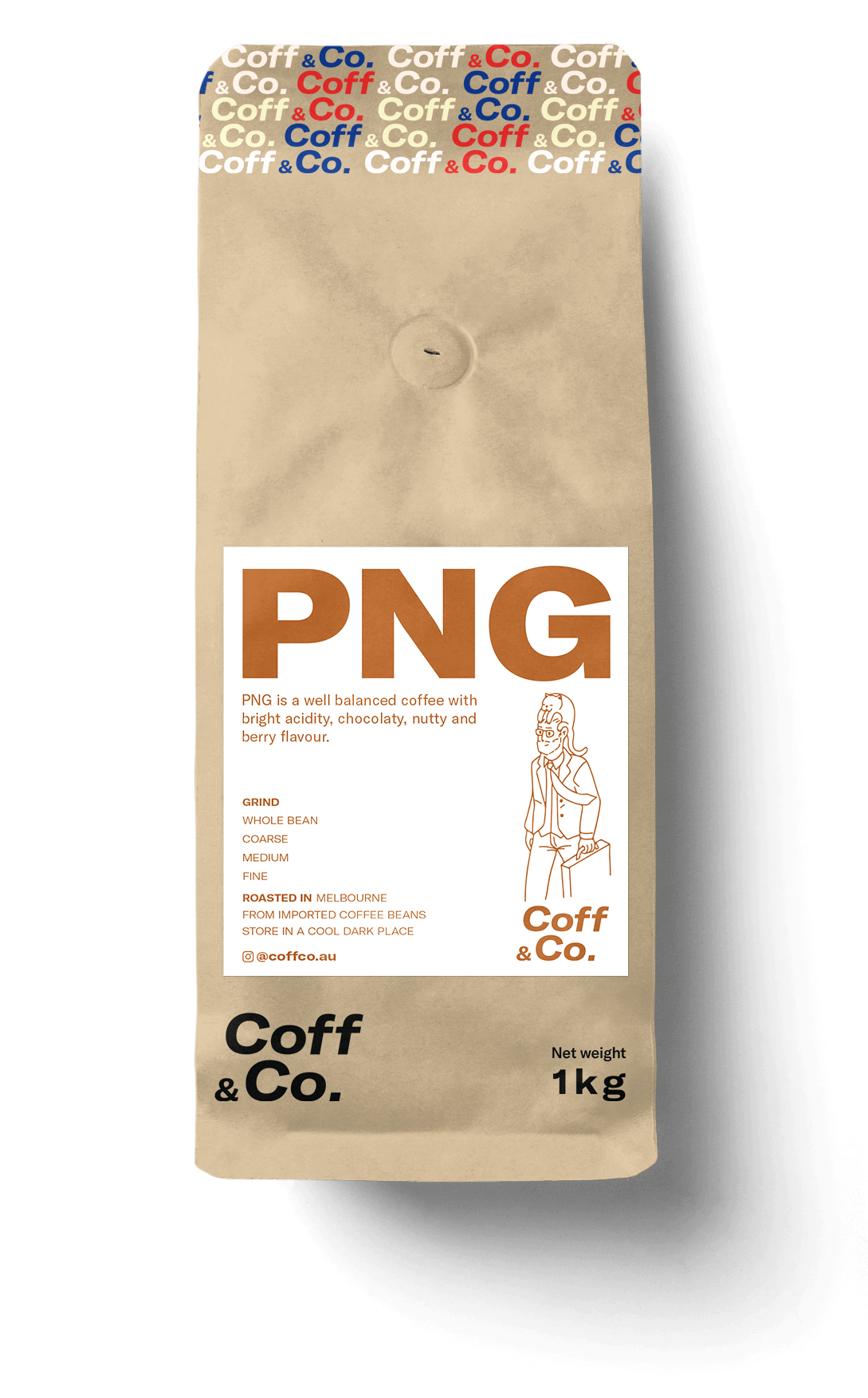 Harvested in high altitudes in rich volcanic soils, the Coff & Co PNG Single Origin beans are low in acidity, packed with flavour and aromas of chocolate, nuttiness and berry.